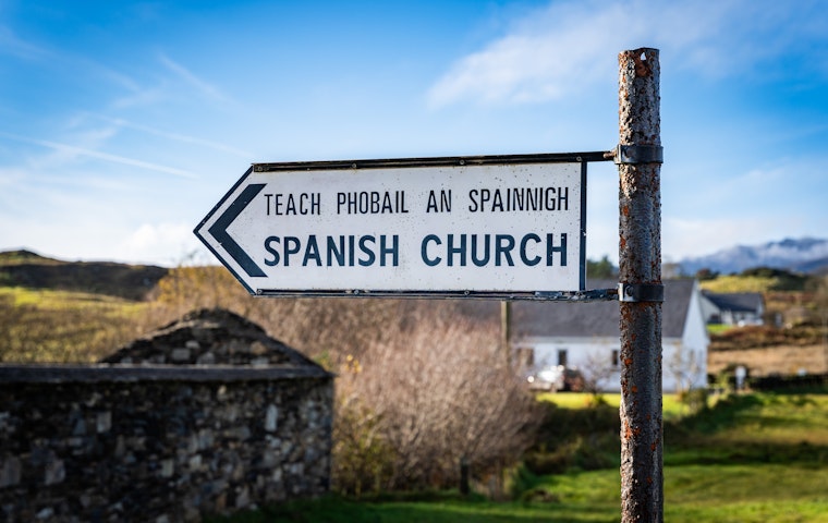 Within two weeks, the group settled on a central theme for the project. Cill an Spáinnigh, also known as Teach Pobail an Spáinnigh or Teampall an Spáinnigh, refers to two sites, one in the parish of Gleann Cholm Cille and one in the neighbouring parish of Cill Chartha. 'Spáinneach' is the Irish-language word for a Spanish person and local folklore, preserved in the storytelling tradition, relates how sometime early in the 18th century a dying Spanish sailor came ashore on the southwest Donegal coast. He was delivered the last rites by a local priest who, educated in Salamanca, could converse with the Spaniard in his native tongue (under colonial rule at that time, Catholic clerics could not be educated in Ireland). The sailor offered a belt of golden guineas, the price of which was subsequently used to build two churches, each now known as Cill an Spáinnigh. The story, as told by Eoghan, was recorded, transcribed and provided to the group (a copy is available here).