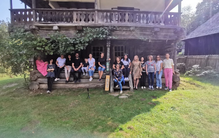 Between August 28th–September 1st 2023 Asociația Perseidele (The Perseids Association) organized and implemented the pilot activity within our Erasmus+ project. During three days of practical workshops, the 18 participants discovered an element of the intangible heritage from Transylvania, namely the painted furniture in the style of Transylvanian Saxons. The workshop was practical because it took part in the most famous studio in Romania for the making of painted furniture, namely the one belonging to Mr Mircea Ungurean situated in Cisnădioara, Sibiu County. This company has preserved and carried on this tradition for more than 25 years. With the help of the four painters, Carmen, Oana, Maria and Victoria Ghilaș, the participants experimented with wood painting in the traditional Saxon style.